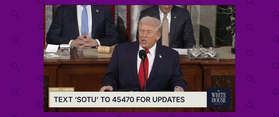 Si sólo tienes unos segundos, lee estas líneas: El presidente Donald Trump, en su primer discurso del Estado de la Unión (SOTU, por sus siglas en inglés) de su segundo mandato, dijo que bajo el gobierno de Joe Biden el país sufrió la peor inflación de la historia. Es falso. La peor inflación en EE. UU. fue de 23.7% entre 1919 y 1920. También es falso que Trump heredara una tasa de inflación a niveles récord. Trump hizo otras afirmaciones falsas, como que “los aranceles los pagan los demás países” o que durante la administración de Biden “11,888 asesinos entraron en Estados Unidos”. No hay pruebas de que Trump haya llevado los medicamentos con receta “del precio más alto del mundo al más bajo”, de que en 12 meses consiguiera compromisos de inversión por más de 18 billones de dólares provenientes de todo el mundo o de que el flujo de fentanilo haya disminuido un 56%, al contrario de lo que afirmó.