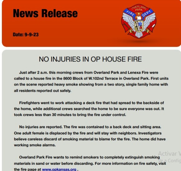 — Overland Park Fire (@OverlandParkFD) September 9, 2023