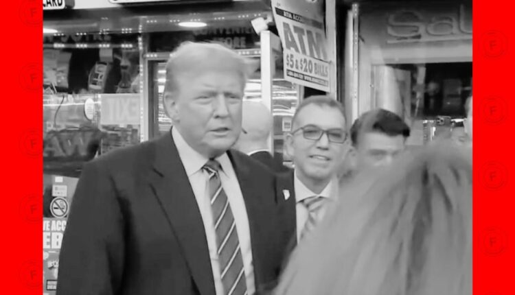 “Este juicio que tengo ahora, ese es un juicio de Biden”, dijo Trump el 16 de abril de 2024 frente a una bodega de la ciudad de Nueva York en el segundo día de selección de jurados.