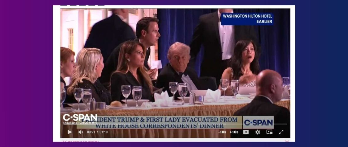 A poco más de media hora de haber iniciado la primera cena de los corresponsales de la Casa Blanca con Donald Trump, el 25 de abril de 2026, el sonido de unos disparos interrumpió el evento. El presidente, sentado en una mesa elevada al fondo del salón de fiestas del hotel Washington Hilton, fue retirado rápidamente del lugar por el Servicio Secreto y llevado a la Casa Blanca, al igual que su esposa, Melania Trump, y el vicepresidente, J.D. Vance.
